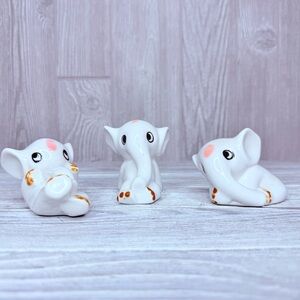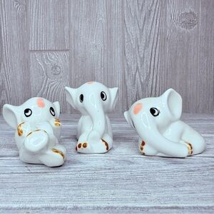 Vintage Ceramic Baby Elephants Figurines posing statues trinket collectible