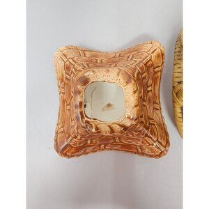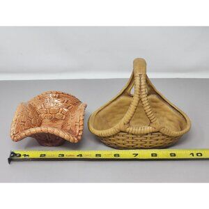 Vintage Ceramic Basket Set With Handle & Woven Design One Is Signed
