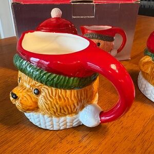 Vintage Ceramic Bear Sugar & Creamer still in box. Measures approximately 3.5-4” tall, sugar bowl 3.5” wide, creamer 5” wide including handle. Excellent condition.