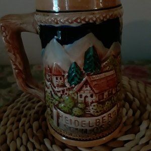 Vintage Ceramic Beer Stein Depicting German Scenes