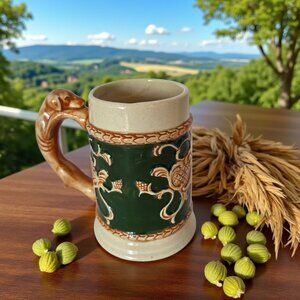 Vintage Ceramic Beer Stein Hand Painted Figural Dog Handle Occupied Japan