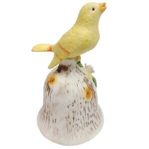 Vintage Ceramic Bell Yellow Bird with Raised Flowers by Price Products 5” Tall