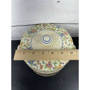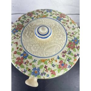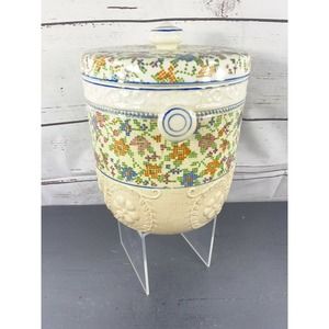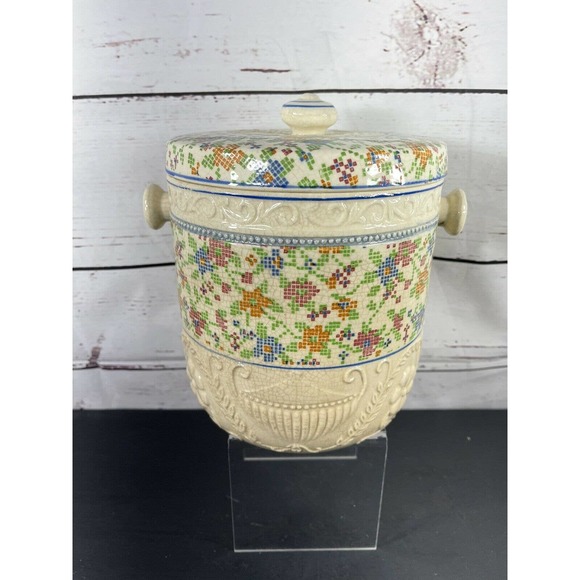 Vintage Ceramic Biscuit Cookie Cracker Jar Barre Cross Stich Pattern No Handle