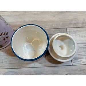 They are in great condition, but there is one little paint chip on the rim of one lid, see photo I pointed it out…. Then also on the underneath of one of the lids is a chip, but besides that they look great.