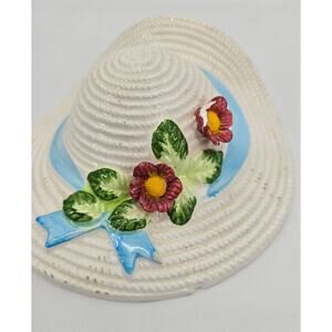 Vintage Ceramic Bonnet Wall Pocket with Blue Ribbon & Flowers