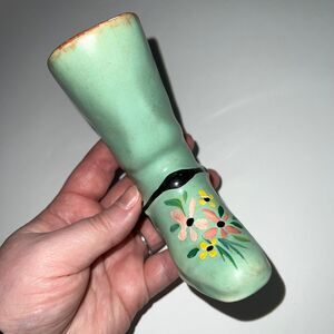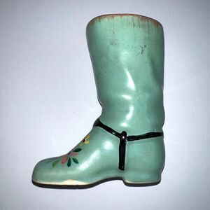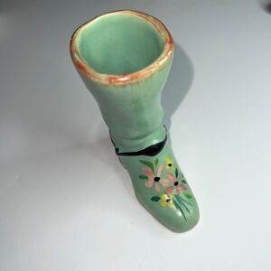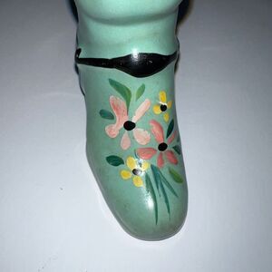 Vintage Ceramic Boot Decorative Collectible Miniature Shoe Green Floral Design