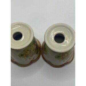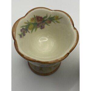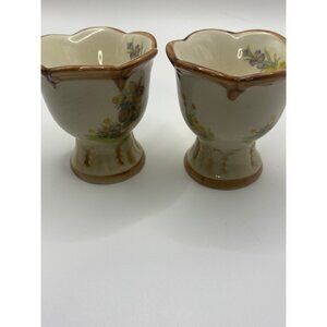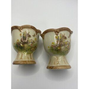 Vintage Ceramic Bunny Floral Egg Cups Set Of 2 With Scalloped Edges