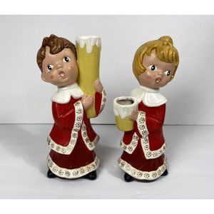 Vintage Ceramic Candle Holders Carolers Choir Girl & Boy Christmas Decor Mcm.
