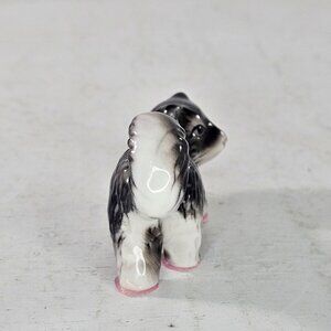 Vintage Ceramic Cat Figurine Black & White Stretch Pose Curled Tail Kitsch