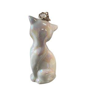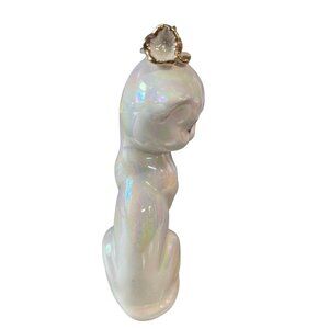 Vintage Ceramic Cat Figurine Lusterware Iridescent Finish Gold Crown Headpiece