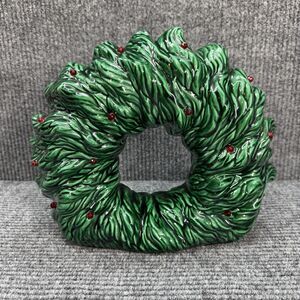 Vintage Ceramic Christmas Green Wreath Holly Red Berries/Beads Glossy Glaze 90s. Excellent pre-owned condition with no flaws found. Measurements in photos. Dated 1993 on bottom. Fast shipping!