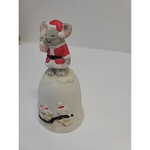 Vintage Ceramic Christmas Mouse Bell Holiday Figurine