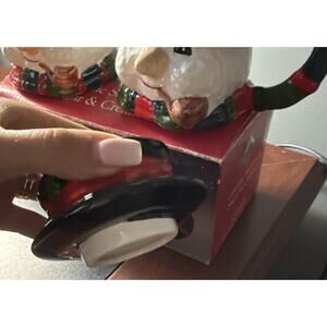 Add a festive touch to your holiday table with this charming vintage ceramic sugar and creamer set from Trimmings Etc. The set features a adorable snowman design in white, black, red, and green, perfect for the Christmas season. With one compartment for sugar and one for creamer, this set is both functional and decorative.