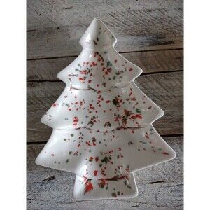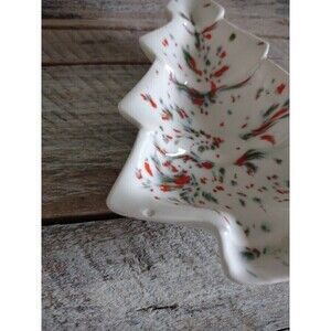 Vintage Ceramic Christmas Tree Dish Splatterware Candy Dish