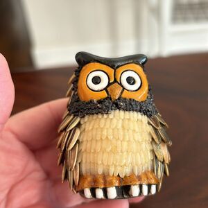 Vintage Ceramic Clay and Seed handmade owl trinket home decor decoration MCM