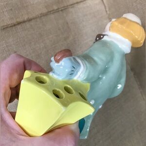 Vintage Ceramic Clown with Umbrella Flower Frog Figure Whimsical Colorful Retro