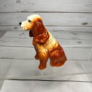 Vintage Ceramic Cocker Spaniel Dog Figurine Brown White Glazed 5" Collectible