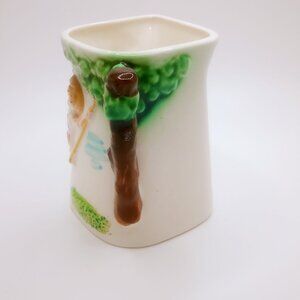 Vintage Ceramic Creamer Pitcher Girl Swing Design 3.5" Tall Tree Branch Handle