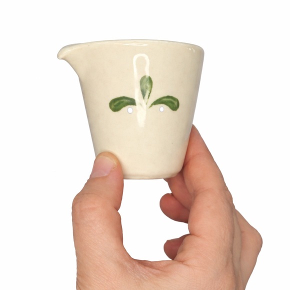 Charming vintage ceramic creamer. Features a delicate green leaf design. Perfect for adding a touch of elegance to your table.