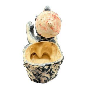 Vintage Ceramic Dog With Hat & Pouch Planter Hand-Painted Crackle Glaze