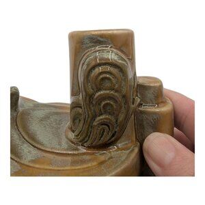 This unique vintage candle holder tells a story of craftsmanship with its intricate carvings and earthy tones. Perfect for adding a touch of history and elegance to your home decor.