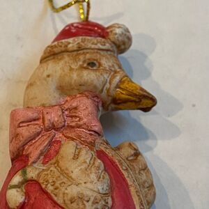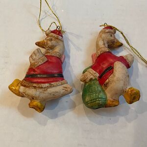 Vintage Ceramic Duck Christmas Tree Ornament Set of 2 Rustic Xmas Decor 3.5”