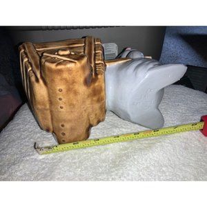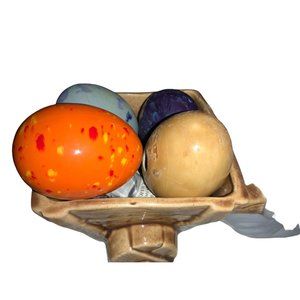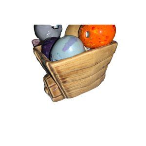 This charming Home Made Vintage Ceramic Easter Bunny Pulling a Cart of Eggs is the perfect addition to your Easter decor. Handcrafted from ceramic, this nostalgic piece is sure to charm your guests.