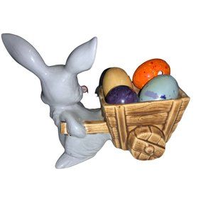 Vintage Ceramic Easter Bunny Pulling Cart of Eggs