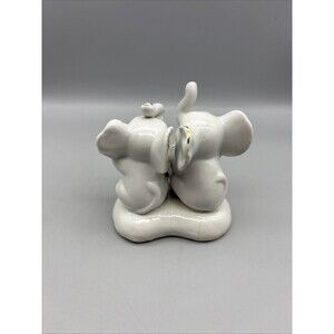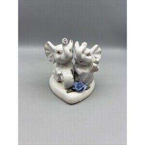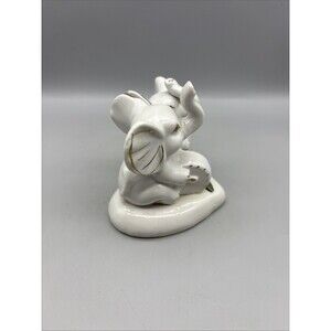 Vintage Ceramic Elephant White/Gold Glossy 4” Playing Instrument Rose Heart Base