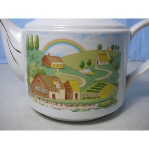 Vintage Ceramic Farmland Rainbow Tea Pot China with Gold Trim