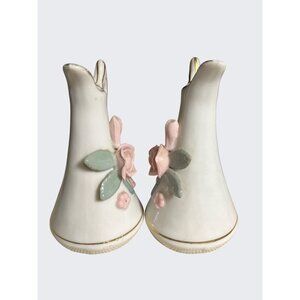 Vintage Ceramic Floral Salt & Pepper Shakers - Rose Design Gold Accents Set Of 2