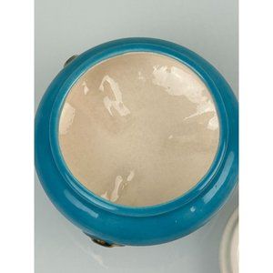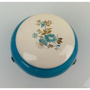 Vintage Ceramic Footed Trinket Box w/ Lid, Blue Floral PH Signed Mid-Century