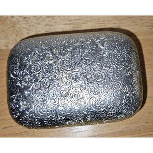 This charming set features a vintage ceramic trinket dish with intricate floral design and a silver tone box, ideal for decor or storage.