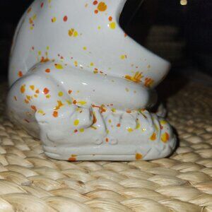 Vintage Ceramic Frog Planter Sponge Holder With Speckled Orange & Yellow Design