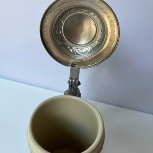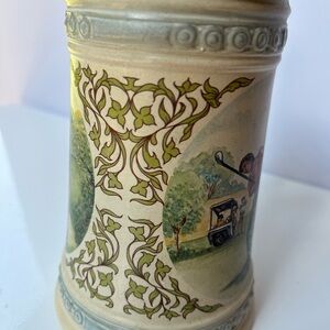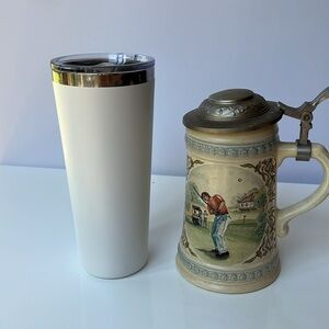 Vintage Ceramic German Beer Stein with Golf Scene and Pewter lid