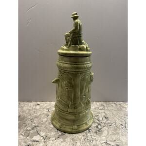 Vintage Ceramic German Hunter Beer Stein with Lid 1970s