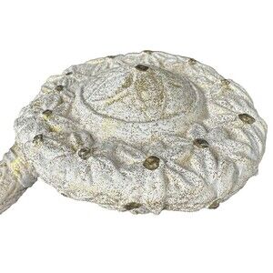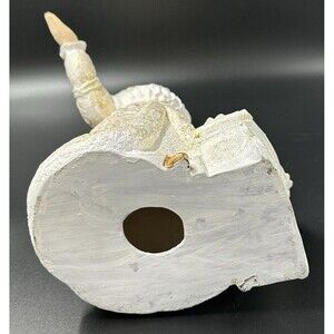 This vintage ceramic figurine features a jolly Santa waving with his sleigh full of flowers. Perfect for the holiday season, this large figurine stands at 15 inches tall and measures 8 inches in width and 12 inches in length. The Santa features Gold Sparkly Flakes on White and Gold Trim that adds a touch of elegance to any Christmas decor. Crafted from high-quality ceramic and porcelain materials, this Santa figurine is a must-have for any collector. With its intricate details and stunning finish, it's sure to become a treasured part of your collection.