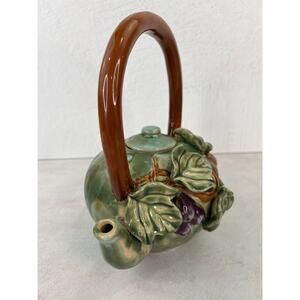 Vintage Ceramic Grape & Grape Vine Tea Pot/ 9 inches long & 8 inches wide.