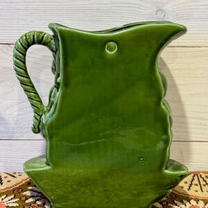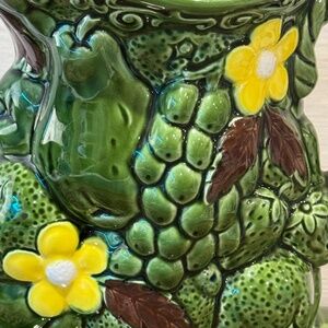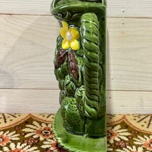 Vintage Ceramic Green Pitcher Fruit Floral Hanging Wall Planter Made In Japan
