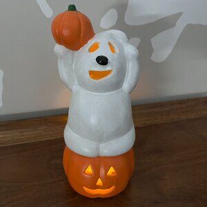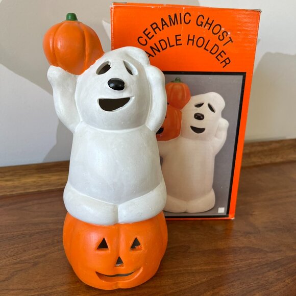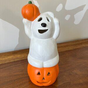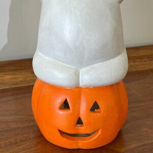 Vintage Ceramic Halloween Ghost & Pumpkin Tea Light Candle Holder Jack-O-Lantern
