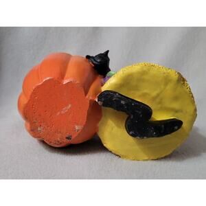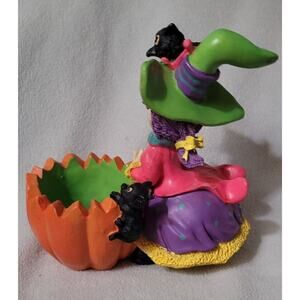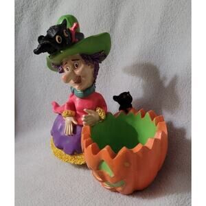 Vintage Ceramic Halloween Witch Pumpkin Candle Holder Planter Jack-O-Lantern Cat