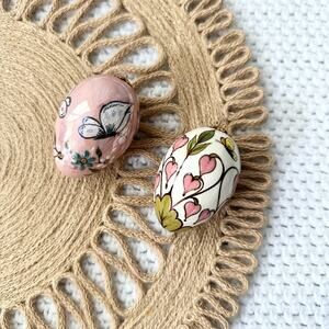 Vintage Ceramic Hand Painted Floral Butterfly Decorative Eggs Fillers Ornaments