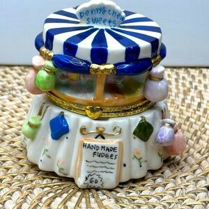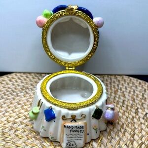 Vintage Ceramic Hand Painted Penny Chew Sweets Trinket Box - Hinged