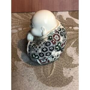 Vintage Ceramic Happy Buddha Figurine Asian Decor Geometric Pattern Decoration