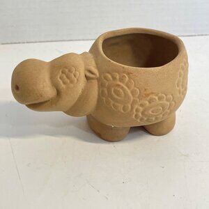 Vintage Ceramic Hippy Hippo Planter with Floral Embossed Design