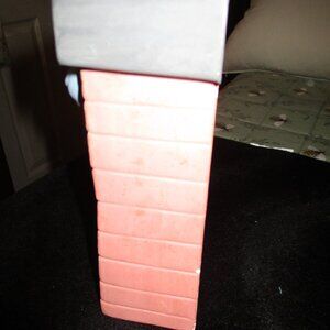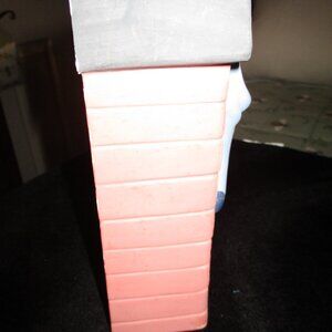 Measures approximately 8" x 7 1/2" x 2 1/2". Item is pre-owned and as such has the following blemishes. Pencil mark on the top which looks like a crack but it isn't, what looks like a small spot from someone's fingerprint, a small spot on one stocking where the paint has rubbed off, a couple of small chips on the side bottom and other side middle on the fireplace.