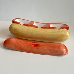 * Vintage Ceramic Hot Dog Shaped Condiment Dish Container 3 Compartments