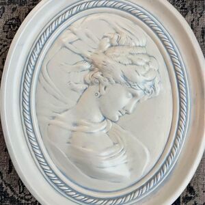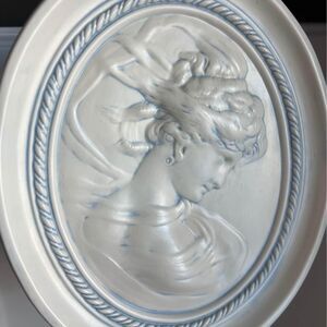 Vintage Ceramic Intaglio Head Bust Blue & White Grandmillennial Academia Art