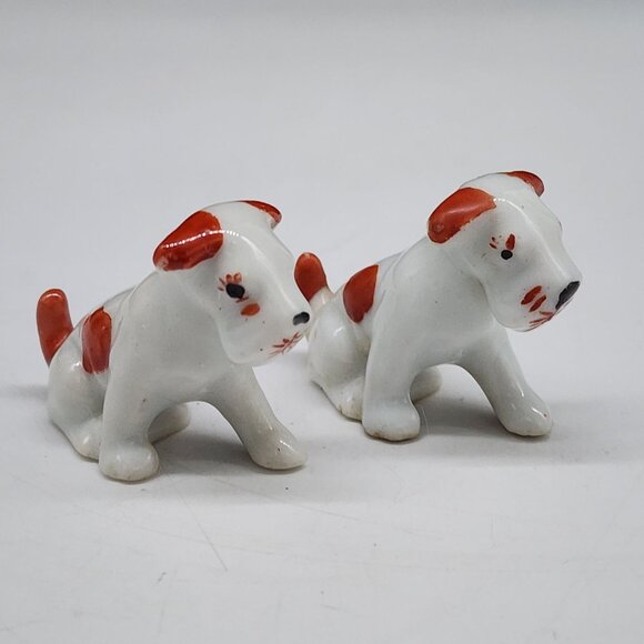 Vintage Ceramic Japan Scotty Dog Figurines Pair Red & White 1.5" Tall