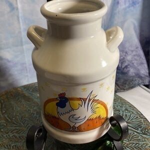 Vintage Ceramic Jug Milk Can Container Storage Farmhouse Rooster Floral.